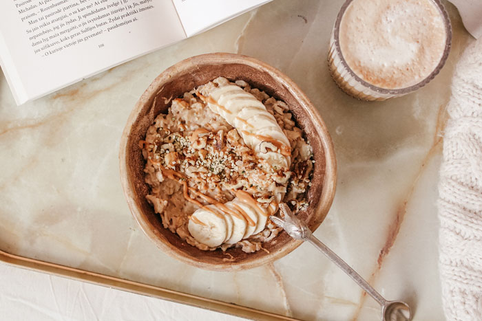 1. Bananinė avižų košė su riešutų sviestu / 1 porcija