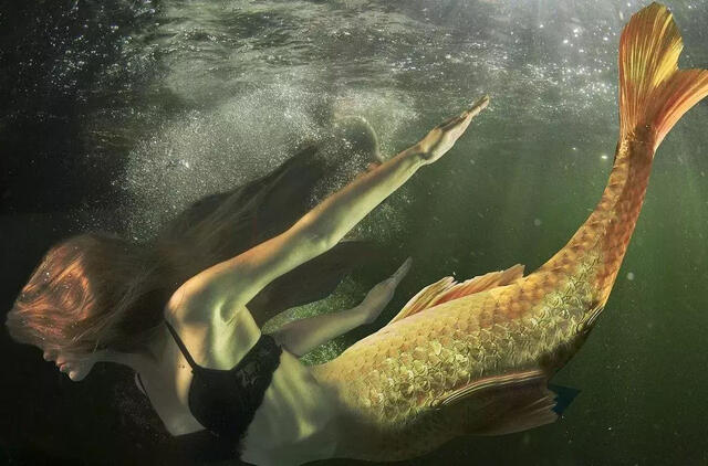 Ji naudojo monofiną, kad sujungtų kojas į didelę žuvies uodegą, ir nustatė, kad tai išties geras būdas judėti vandenyje.