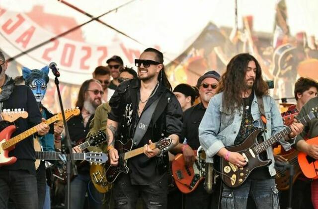 Renginio metu dalyvaujantys gitaristai iškeltais instrumentais kūrė širdies formą, kad parodytų solidarumą ir paramą Ukrainai.