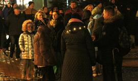 Gal pusvalandį atskiri būreliai liko Jūratės ir Kastyčio skvere, kuriame baigė gurkšnoti šampaną ir ne tik, bučiavosi, sveikino vieni kitus su šventėmis, kalbėjosi telefonu su artimaisiais. Visi kiti tekinomis skubėjo į savo automobilius.