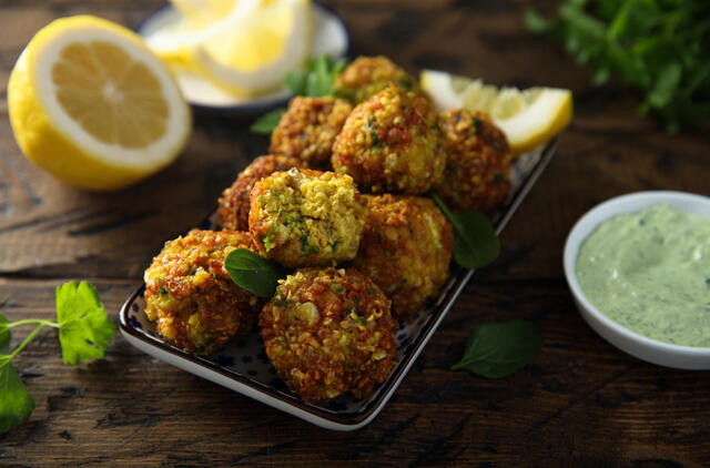 Patarimai: falafeliai nuostabiai dera su jogurtiniu „tzatziki“ ar gvakamolės padažu, puikiai tinka patiekti su salotomis, kruopomis ar tortilijomis.