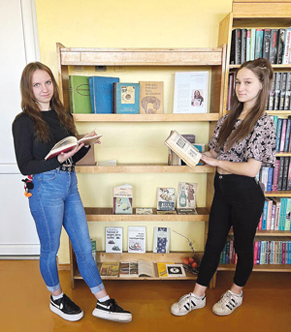 Prie senovinių kulinarijos knygų ekspozicijos – būsimosios virėjos Adrija Stonkutė (kairėje) ir Laura Stanislovaitytė.