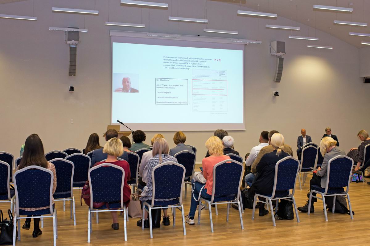Konferencijoje dalyvavo ir ispanas Javier Cortes – šiuo metu jis yra vienas iškiliausių krūties vėžio specialistų ne tik Europoje, bet ir pasaulyje. J. Cortes mielai sutiko skaityti pranešimą Klaipėdoje jau ne pirmą kartą – lankėsi čia prieš keletą metų, o šiais metais pranešimą pristatė nuotoliniu būdu. Savo pranešime J. Cortes kalbėjo apie naujovę onkologijoje – konkrečios vėžio rūšies gydymo naujas galimybes.