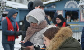 Į Teatro aikštę aukoti vienišiems seneliams, žinoma, tiek klaipėdiečių kaip šeštadienį į eglutės įžiebimo ceremoniją neprisirinko. Bet čia karaliavo gera nuotaika. Juo labiau kad katilą sriubos išpilstė pats Klaipėdos meras Vytautas Grubliauskas.
