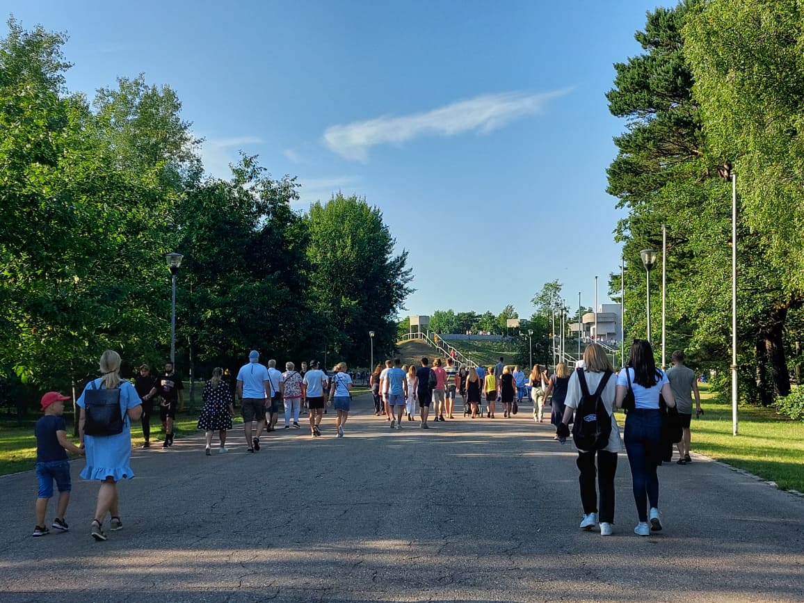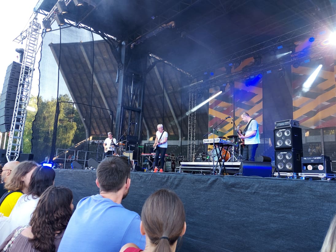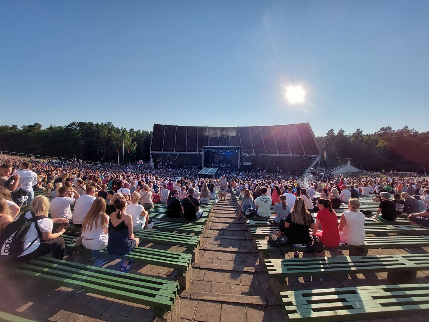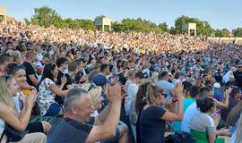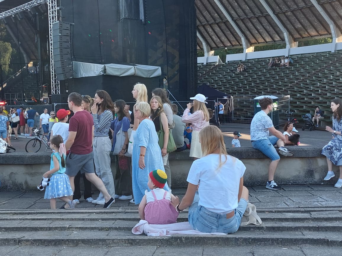 Vasaros estradoje laisvų sėdimų vietų - vos viena kita. Klaipėdiečiai valstybinę dieną švenčia pasipuošę Lietuvos trispalvių simbolika ar rankose plevėsuodami vėliavas.