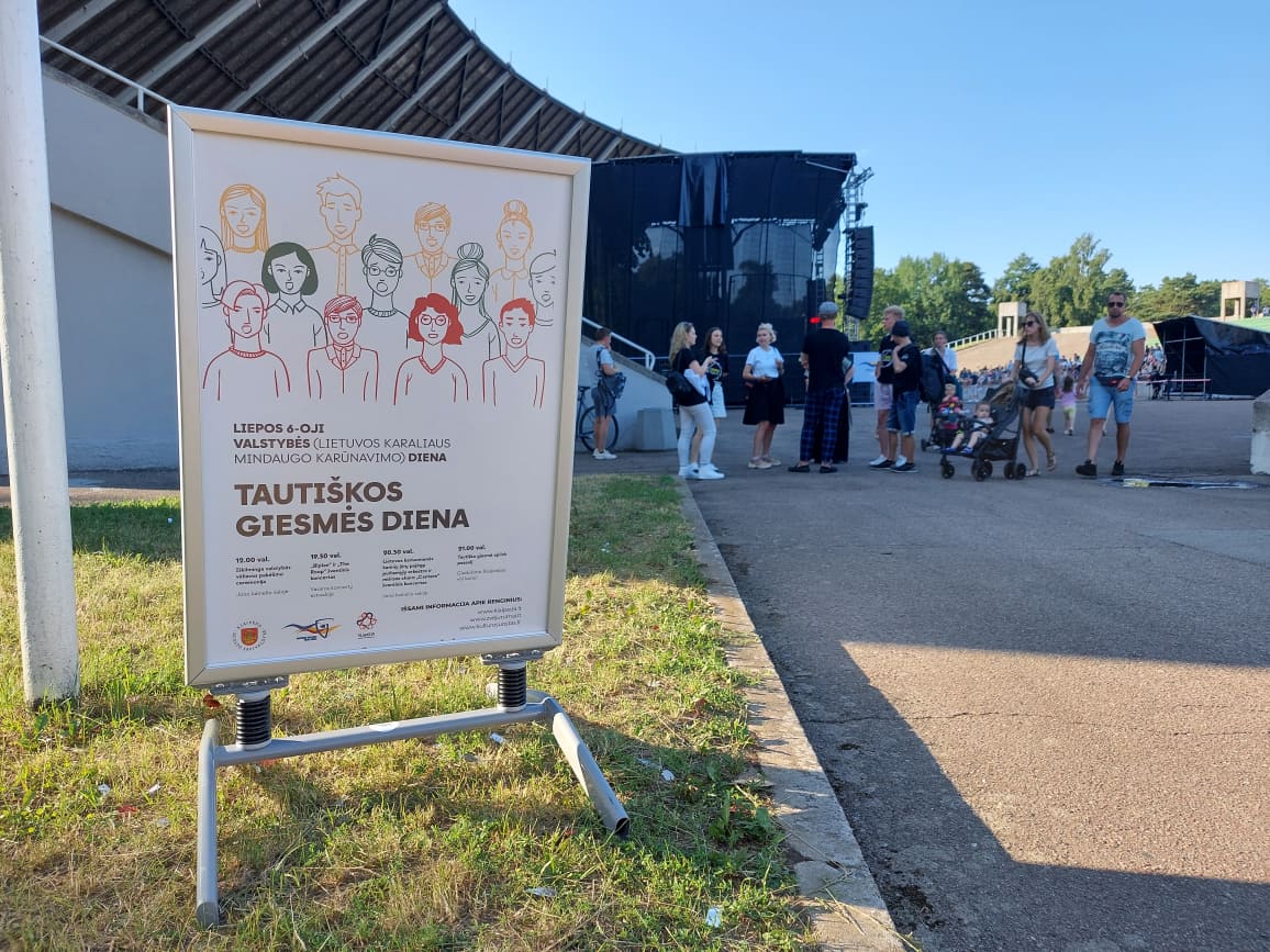Nuo 21 val. visi sustoję giedojo Lietuvos himną ir aplink plevėsavo šalies trispalvės.
