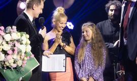 „Užaugau teatro užkulisiuose, daug laiko praleidau teatre, mačiau tavo kuriamus personažus, skirtingas emocijas, kurios leido man užaugti savimi pasitikinčiu žmogumi. Dėkoju tau už meilę ir visišką palaikymą“,– scenoje susijaudinęs kalbėjo aktorės sūnus Simonas Sabonaitis, į šventę atvykęs su žmona Daiva.