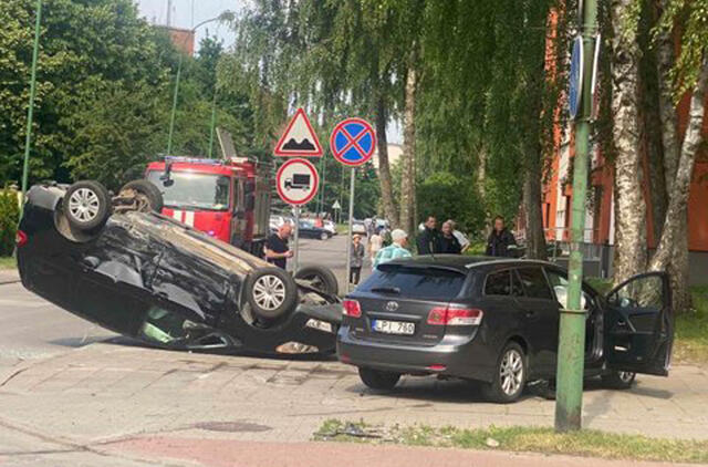 Laimingai uostamiestyje baigėsi didžiausia savaitgalio avarija, per kurią vienas automobilis liko stovėti aukštyn ratais.