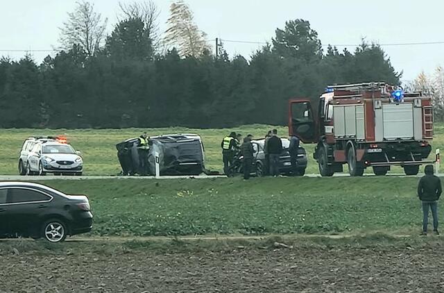 Kaip pasakojo pro šalį važiavę vairuotojai, vienas automobilis („Kia“) gulėjo apvirtęs ant šono, kitas stovėjo, bet suknežintu priekiu. Į ligoninę išvežti vairuotojai – vyras ir moteris.
