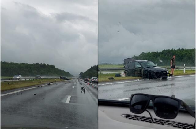 Ugniagesių pagalbos vairuotojo išlipimui iš automobilio neprireikė, bet teko rinkti nemažai ant kelio pabirusių nuolaužų. Žmonės nenukentėjo.
