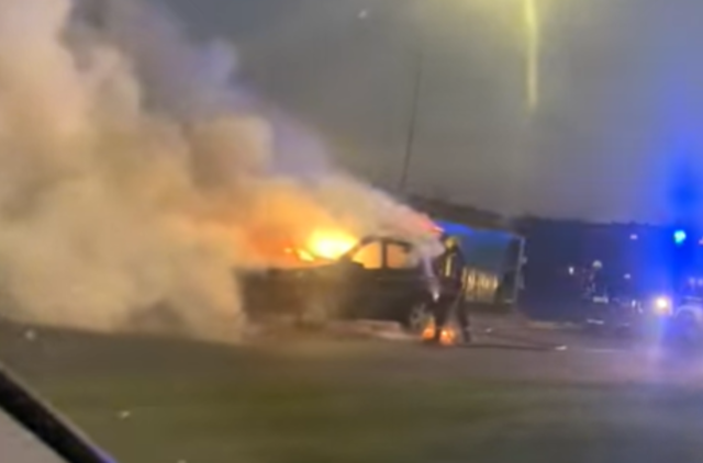 Pro šalį važiavę klaipėdiečiai sustojo padėti į nelaimę patekusiai "Mercedes-Benz ML" vairuotojai, tačiau gesintuvai buvo bejėgiai prieš įsisiautėjusią liepsną.