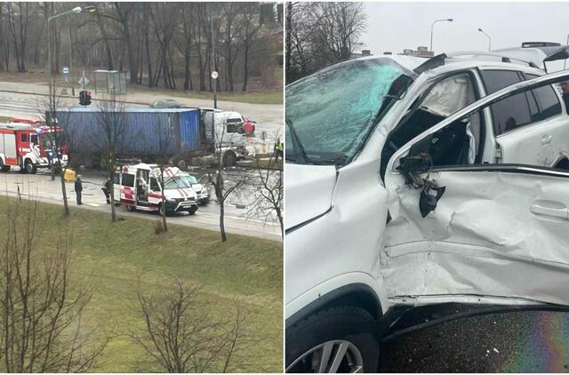 Susidūrė jūrinį konteinerį vežęs vilkikas MAN ir miesto visureigis "Volvo XC90".