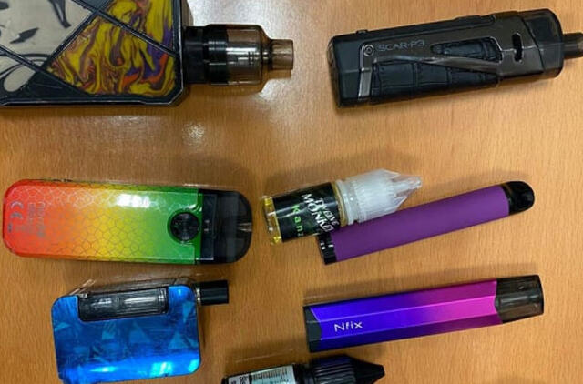 Vaikino striukės vidinėje kišenėje rasti du buteliukai su skaidriu skysčiu elektroninėms cigaretėms pildyti.