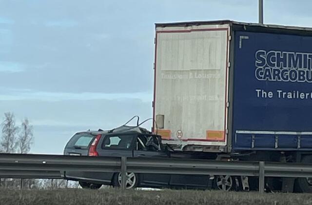 „Volvo" palindo po vilkiko puspriekabe: vairuotojas šansų išgyventi neturėjo