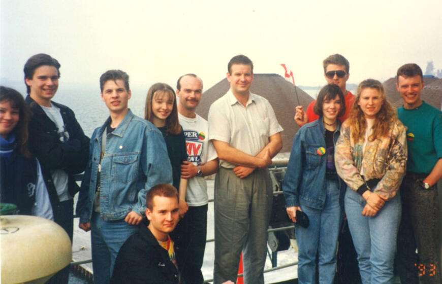 LAIVE. Įgulos nariai ir Kanados lietuviai laive „Kapitonas Stulpinas“.