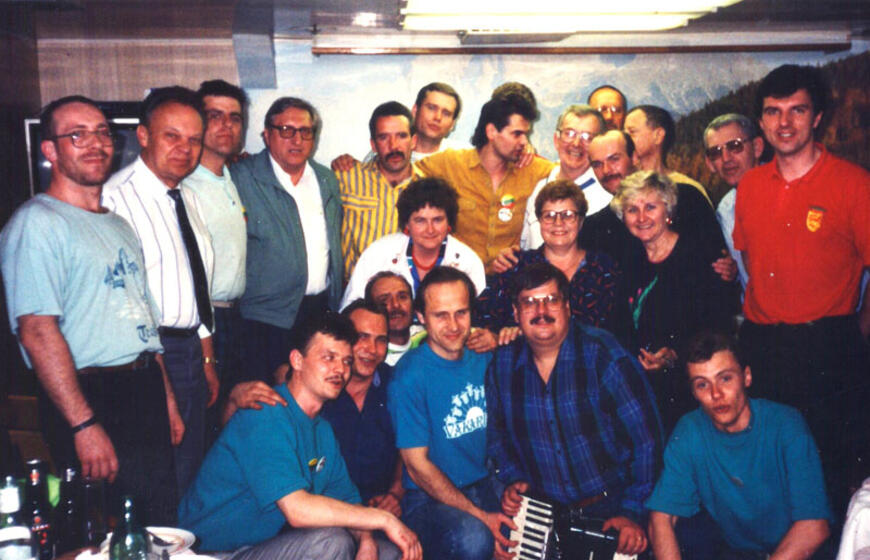 SUSITIKIMAS. Buvę „Kapitono Stulpino“ įgulos nariai Klaipėdoje praėjus 30 metų po įsimintino reiso (iš kairės): jūreivis Alvydas Gečys, Kanados lietuvių bendruomenės pirmininkas Kazimieras Deksnys, virėjo padėjėjas Svajūnas Jokubauskas, elektromechanikas Robertas Valantiejus, jūreivis Valentinas Šemetulskis, virėjas Ričardas Gurauskas, elektrikas Leonardas Stulginskas.