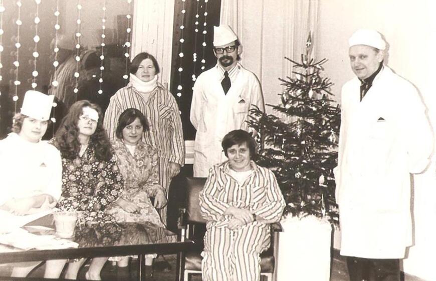 J. Pakutinskas (dešinėje) su pacientėmis ir slaugytoja. Antrame plane - gyd. S. Kilius.