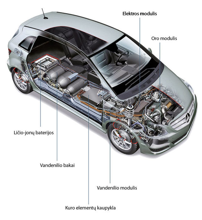 Maža to - vokiečiai siūlo kitą receptą. Tai - elektromobilio ir kuro elementų modelio "mišrūnas". Tai būtų mašina, turinti ir vandenilio baką, ir įkraunamus akumuliatorius. Įprastu režimu būtų naudojama elektros energija, o, jei pavyzdžiui, reikėtų įveikti didelį atstumą - ir vandenilis.