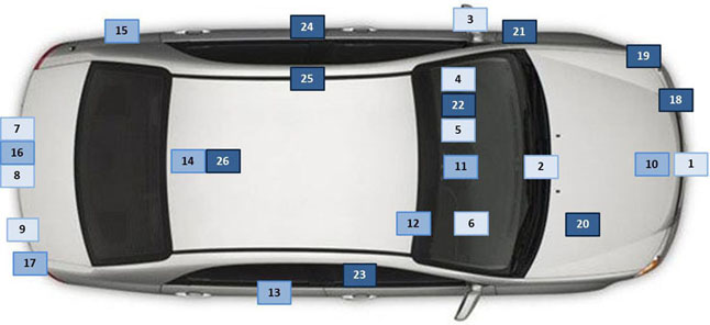 Skirtingi reikalavimai galioja kone trims dešimtims automobilio dalių ir techninių mazgų - pradedant bamperiais, veidrodėliais ir valytuvais, baigiant triukšmo ir degalų emisijos normomis. Tarp tų "pradedant" ir "baigiant" pakliūva skirtingi oro pagalvių, centrinės konsolės įrengimo, aukštos įtampos elektros sistemos, stogo struktūros, prietaisų skydelio, galinio vaizdo kamerų, netgi kapoto ir durelių spynelių bei numerio laikiklio standartai.
