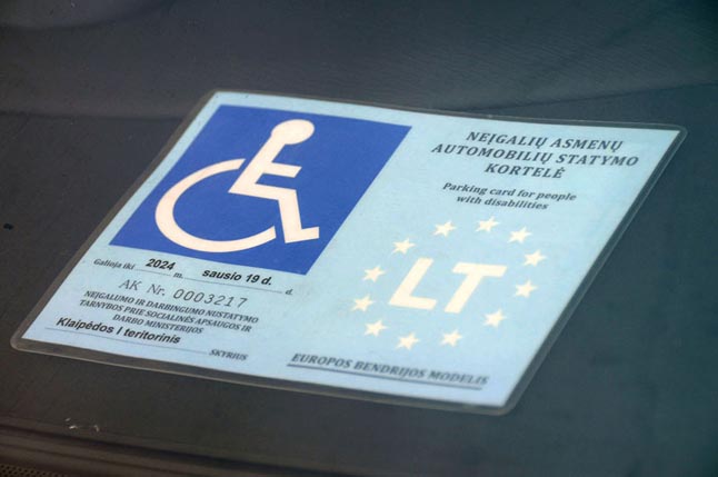 ĮSTATYMAS. Vien tai, kad automobilis pažymėtas neįgaliojo ženklu, o vairuotojas turi neįgaliųjų asmenų statymo kortelę, nesuteikia teisės pažeidinėti kai kuriuos eismo taisyklių punktus - tą daryti galima tik turint neįgaliojo pažymėjimą. Eimanto CHACHLOVO nuotr.