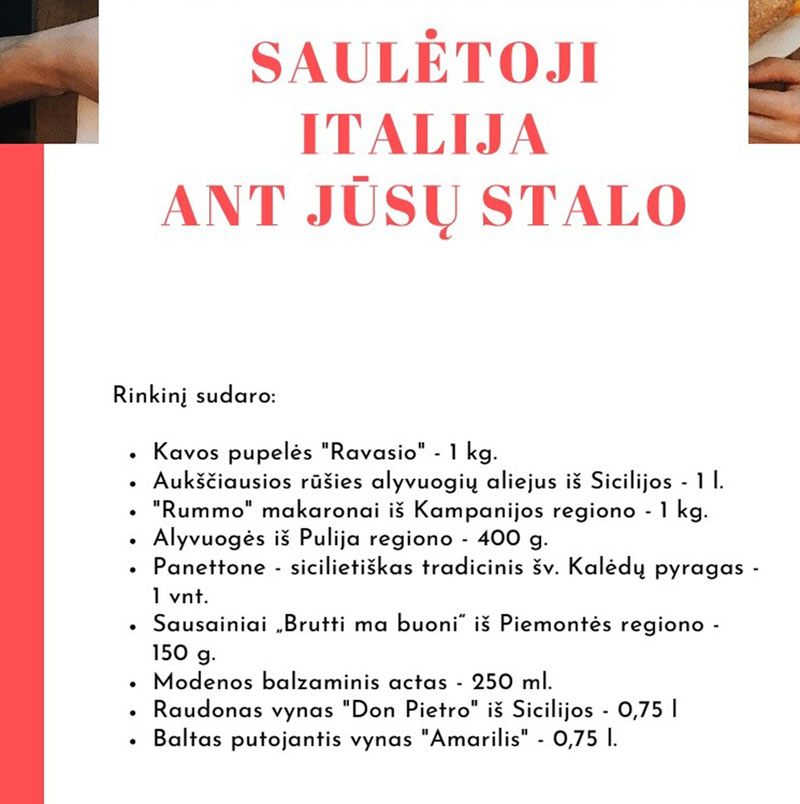 "Vakarų ekspresas" susipažino ir su pasiūlymais medikams, ką jiems pateikė KTKIC. Buvo galima rinktis iš maždaug 8 siūlymų su skirtingais variantais. Dominavo šventinė vakarienė keturiems asmenims be gėrimų. Taip pat buvo galima užsisakyti maisto rinkinius.
