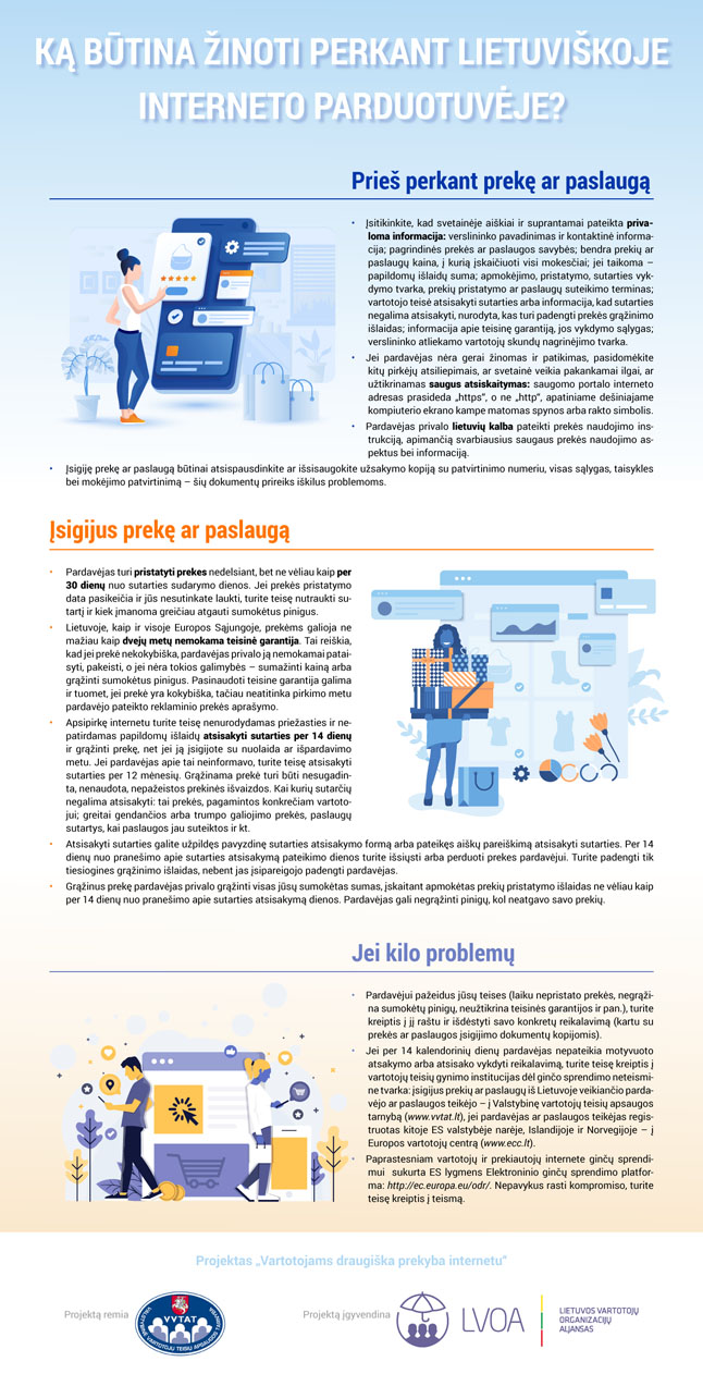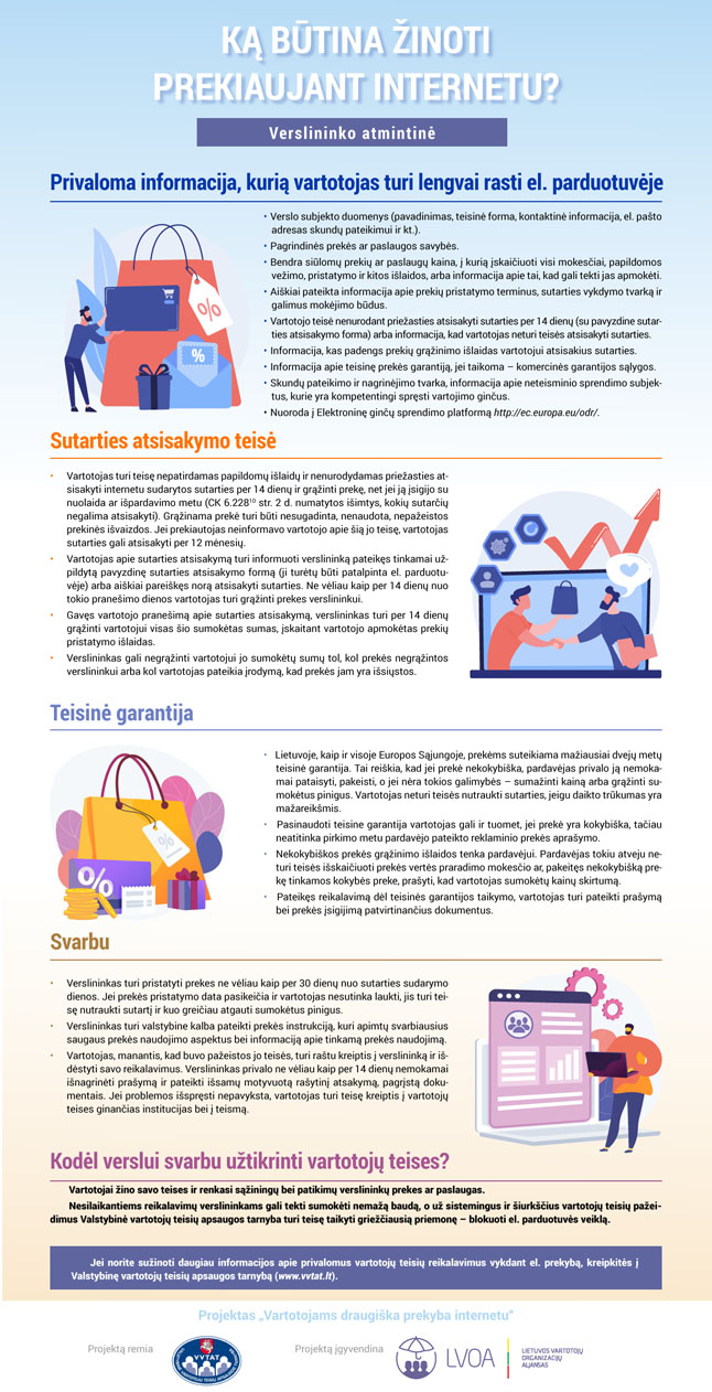 LVOA ekspertai pastebėjo, kad Lietuvos verslininkams trūksta žinių apie vartotojų teises ir tik maža dalis vartotojų žino, kokią informaciją privalo rasti el. parduotuvėse, kaip elgtis, įsigijus nekokybišką prekę.
