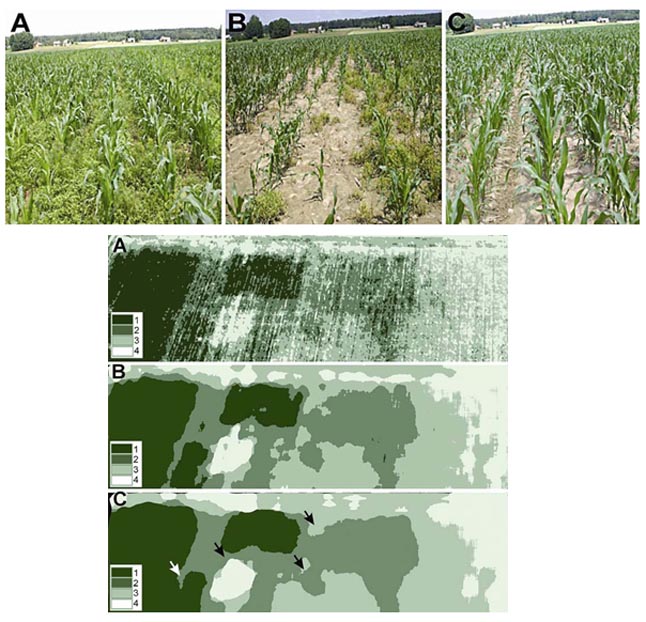 Piktžolių intensyvumas kukurūzų laukuose pagal aeronuotraukas.