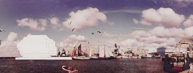 M. Daukšys: Daugeliui autorių ši vieta galbūt nepasirodė pakankama išsiskleisti, juolab kad buvo pasiūlytos patrauklesnės alternatyvos. Pavyzdžiui, Danės žiotys. Ši vieta dalyviams daug "skanesnė". Ir pasaulyje esama labai sėkmingų panašių projektų - Osle, Kopenhagoje. Prie didelio vandens didelis objektas visada atrodo geriau. Kūrėjo akimis, ši vieta toks pat užkampis, kaip ir Vasaros estrada. Fone - šiluminė elektrinė, buvęs "Teo LT" pastatas, neaiški tilto perspektyva...