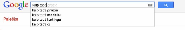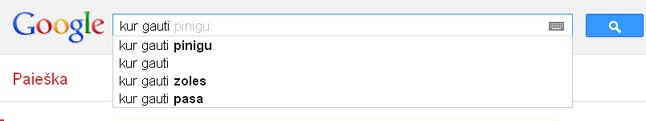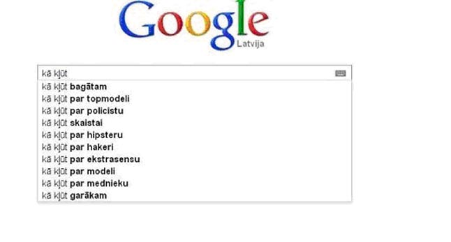 Įvedus į paieškos laukelį frazę „kur dabūt...“ (kur gauti), paieškos sistema automatiškai išmetė „kur dabūt naudu, kur dabūt nodokļu grāmatiņu, kur dabūt zālīti“ (kur gauti pinigų, kur gauti mokesčių knygelę, kur gauti žolytės ir kt.).