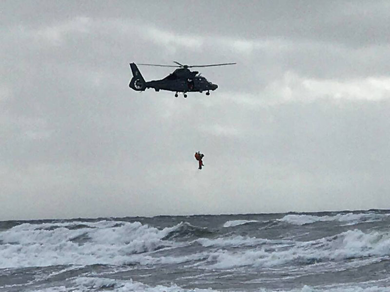 Bangavimas buvo labai stiprus, mes nusileidome bures, įsijungėme variklį. Tam, kuris buvo vienas vandenyje, išmetėme gelbėjimosi virvę. Jam įlipti į laivą buvo labai sunku. Bangos blaškė taip, kad jį pagavus už pakarpos išplėšdavo iš rankų. Pamatėme atskrendantį sraigtasparnį. Mūsų jachtos stiebas aukštas, trukdėme priskristi. Pilotas mums parodė ženklus ir mes pasitraukėme.