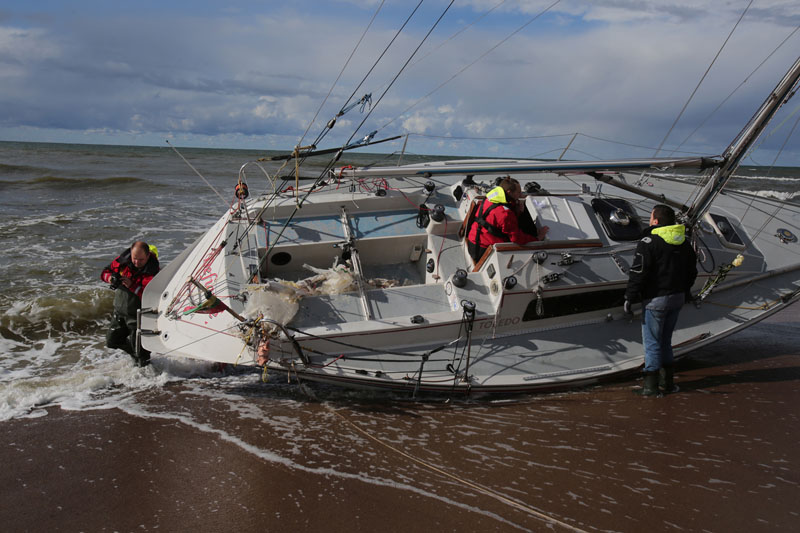 Į krantą išmestos buriuotojų jachtos