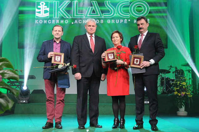 V. Grubliauskas garbės raštus įteikė "Klasco" 35 metus išdirbusiai Personalo ir administravimo skyriaus ūkio dalies vedėjai Birutei Grikšienei, "Achemos grupės" narėje AB "Klaipėdos laivų remontas" (KLR) 30 metų išdirbusiam Infrastruktūros tarnybos viršininkui Gintariui Milvydui ir A. Paužai.