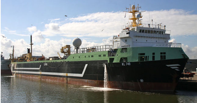"MARGIRIS". Antras pagal dydį pasaulyje žvejybos laivas "Margiris" per parą gali pagaminti 300 t šaldytų žuvų produkcijos.