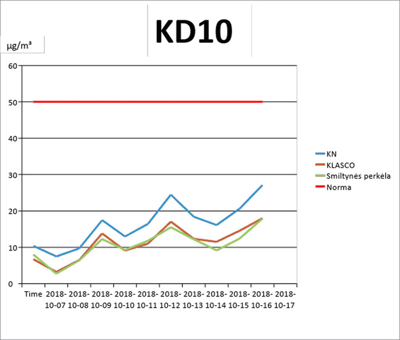 Klaipėdos miesto visuomenės sveikatos centras kelias dienas iš eilės informavo, kad Klaipėdoje oro kokybės matavimo stotelės fiksuoja kietųjų dalelių paros normos viršijimą. Specialistų išplatintoje informacijoje teigiama, jog kietųjų dalelių koncentracijos padidėjimą mieste šiuo atveju lėmė autotransporto sukelta tarša, statybų ir gatvių tiesimo bei remonto darbai.