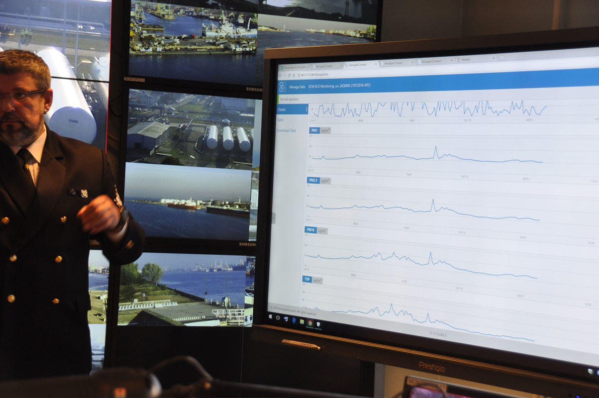 Vyriausiasis uosto dispečeris Aleksandras Kaupas pademonstravo, kaip veikia elektroninė sistema, prie kurios buvo dirbama kelerius metus. Jo teigimu, šiuo metu uosto dispečeriai gali matyti visą situaciją uoste. Įdiegtos oro taršos ir vandens monitoringo sistemos. Vandens tarša kontroliuojama turint 12 naftos taršos daviklių, kurie yra išdėstyti visame uoste.