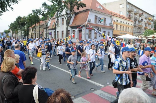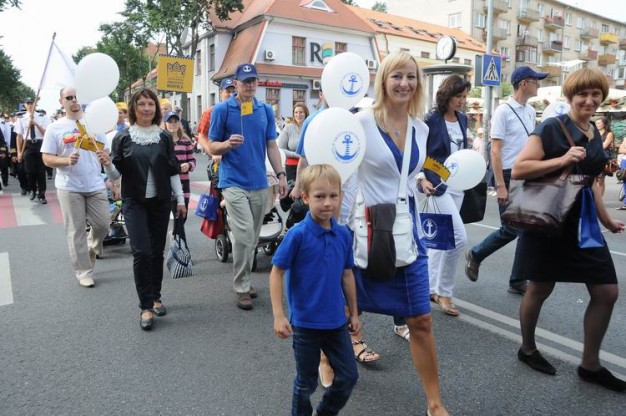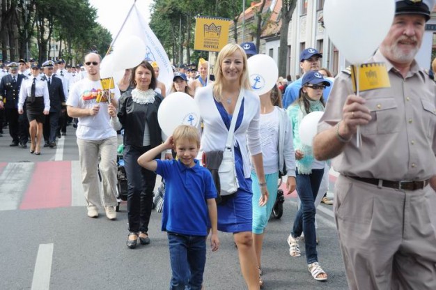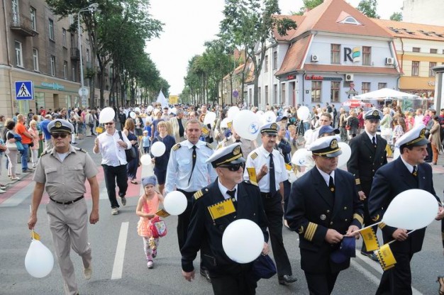 Pražygiavo tradicinė uostamiesčio Jūros šventės eisena. Jūrinių organizacijų eiseną papuošė miesto kūrybiniai kolektyvai, keturi orkestrai.