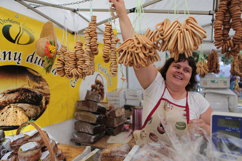 KIEKIS. "Kiek prikepsime ragaišių, riestainių ir duonos, priklauso nuo to, kokioje vietoje prekiausime, ir labiausiai nuo oro. Jeigu oras blogas - mažiau, geras - daugiau", - sakė ponia Loreta, prekiaujanti Verbūnų duonos gaminiais.