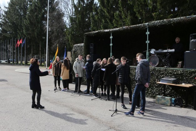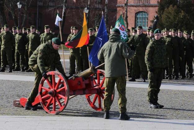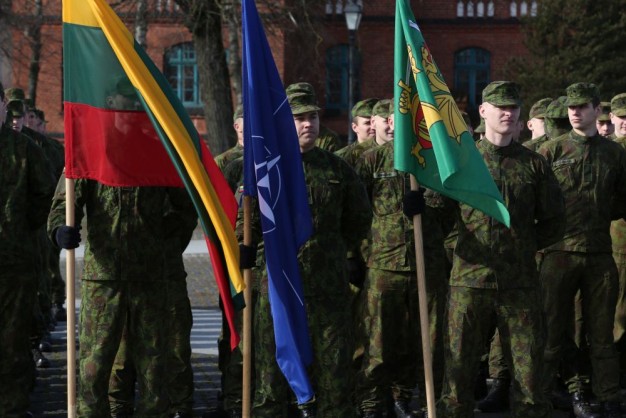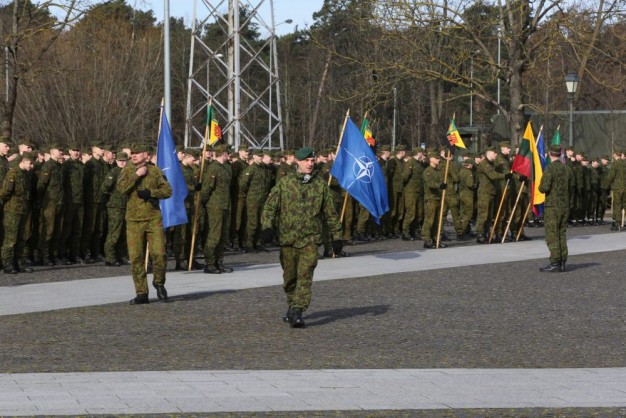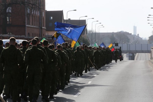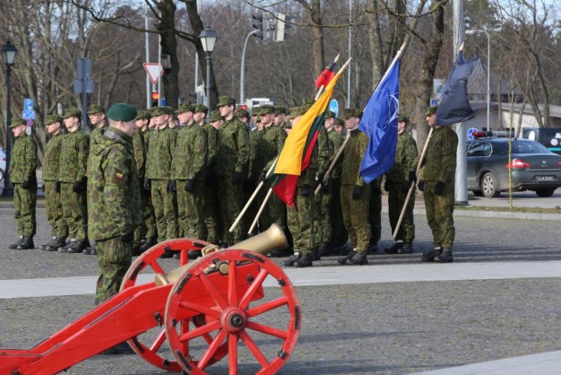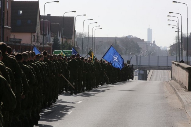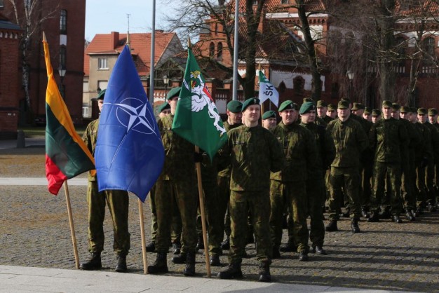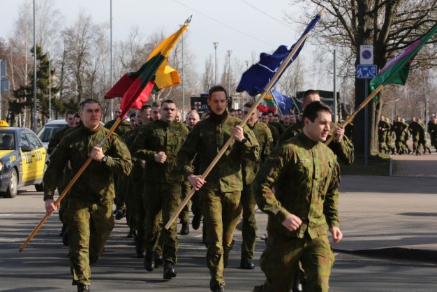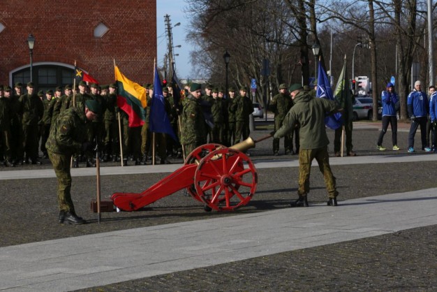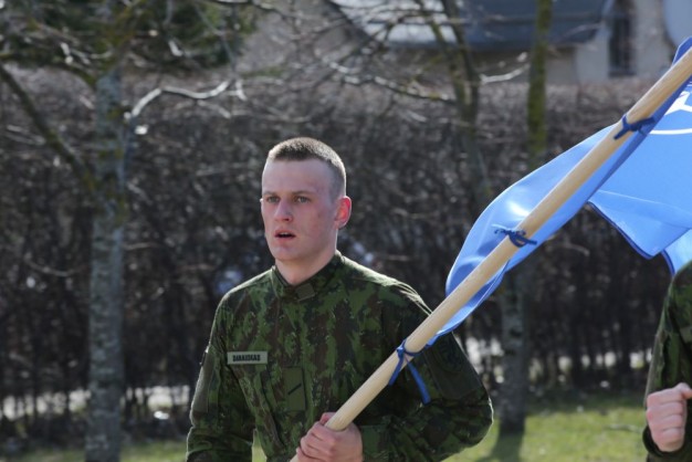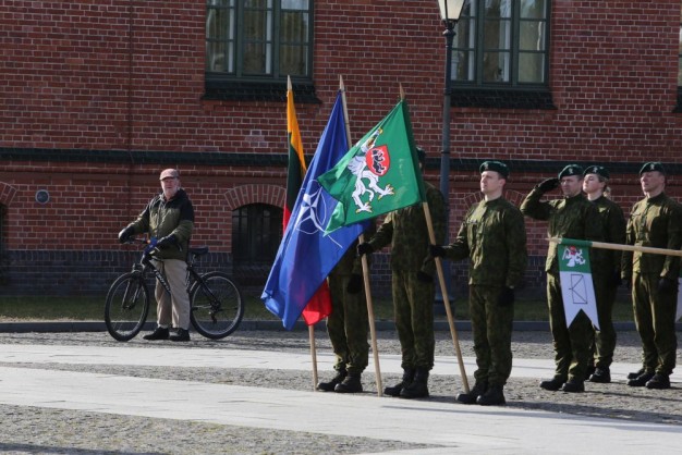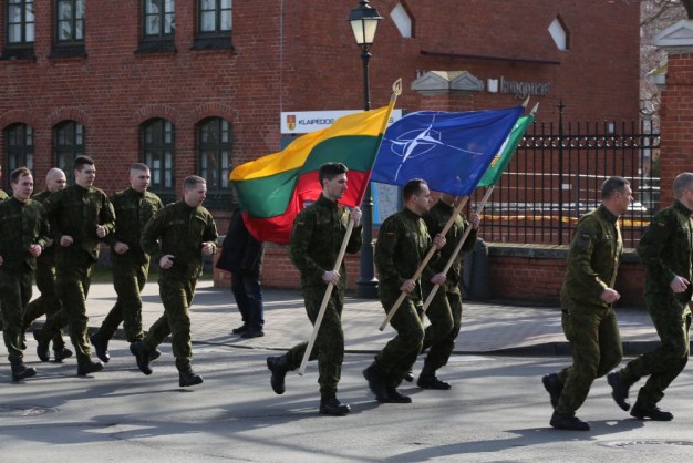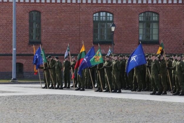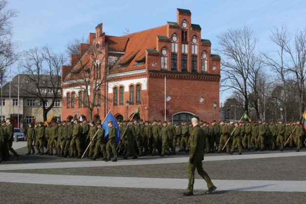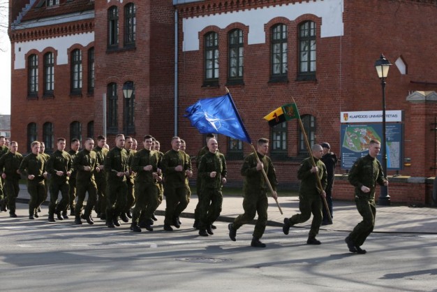 Penktadienio rytą kariai miestiečiams dalijo Lietuvos ir NATO vėliavėles, o vėliau susibūrė Klaipėdos universiteto aikštėje. Motorizuotosios pėstininkų brigados "Žemaitija" vadas pulkininkas Artūras Radvilas sveikino karius esant stipriausios pasaulyje saugumo organizacijos nariais.