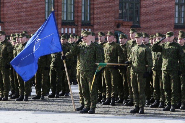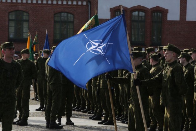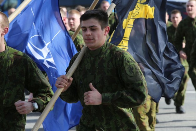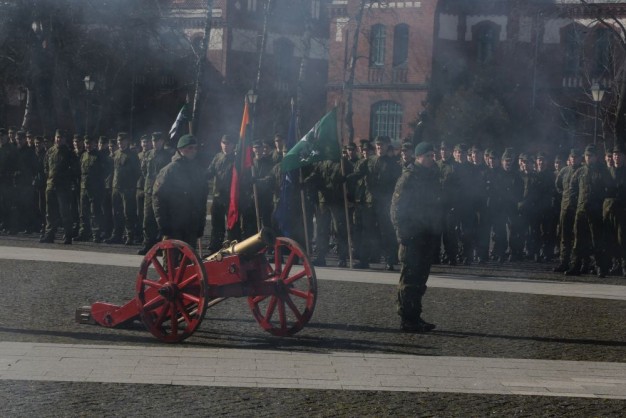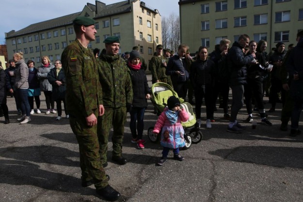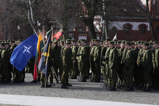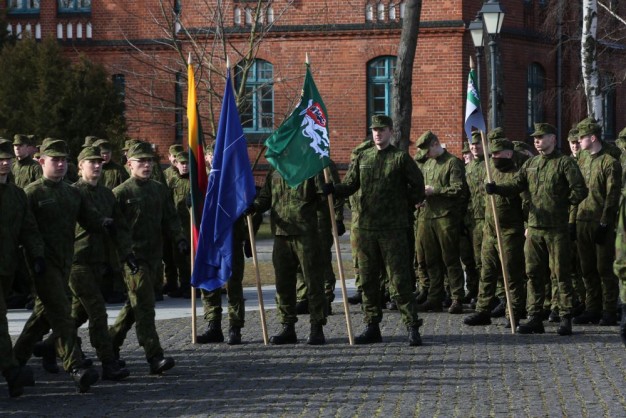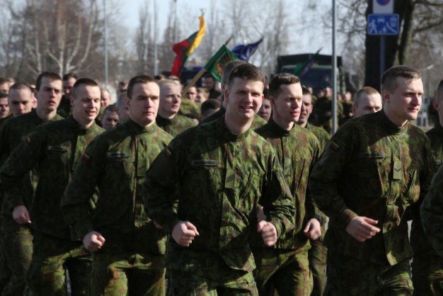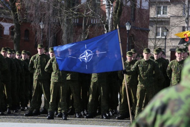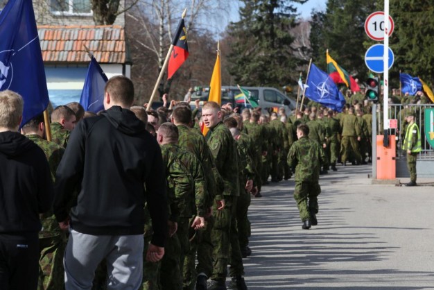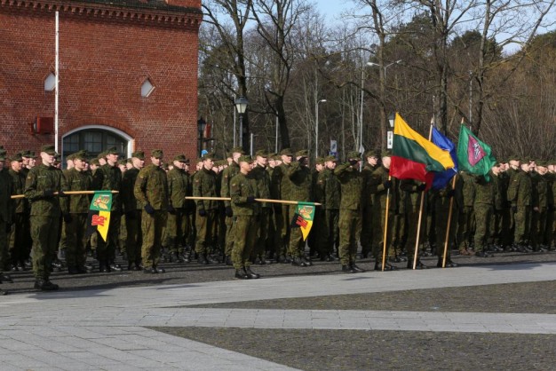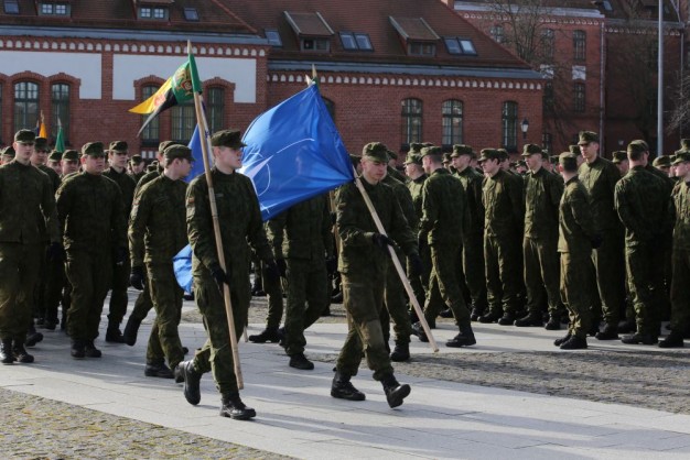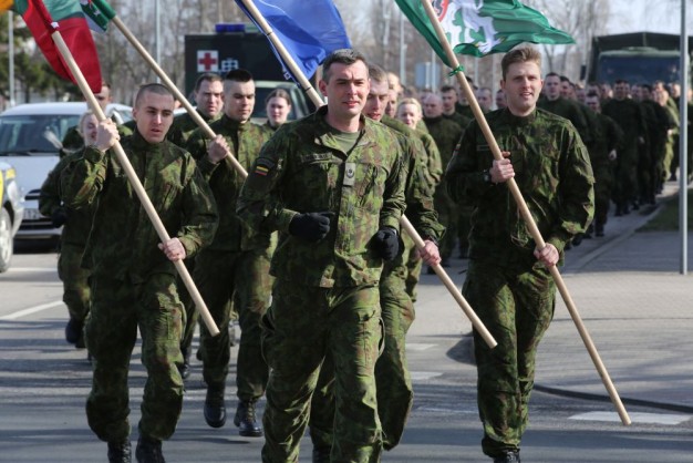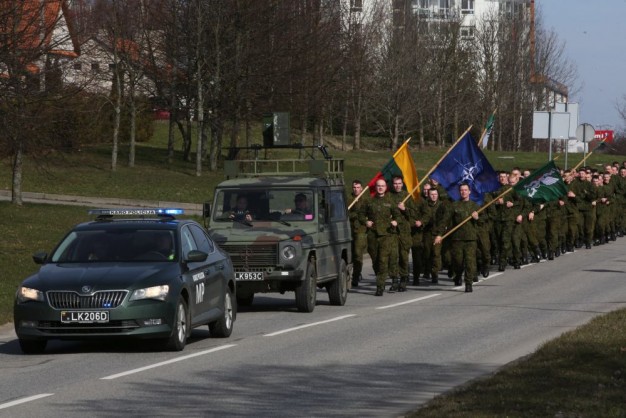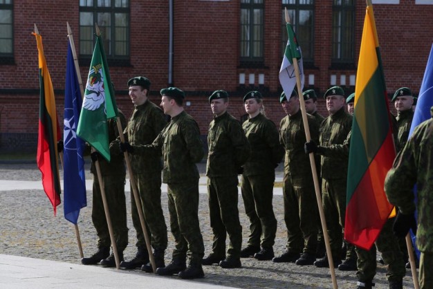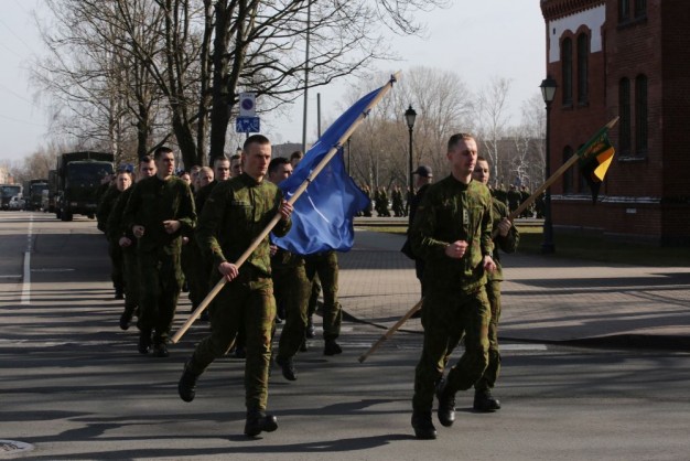 Penktadienio rytą kariai miestiečiams dalijo Lietuvos ir NATO vėliavėles, o vėliau susibūrė Klaipėdos universiteto aikštėje. Motorizuotosios pėstininkų brigados "Žemaitija" vadas pulkininkas Artūras Radvilas sveikino karius esant stipriausios pasaulyje saugumo organizacijos nariais.