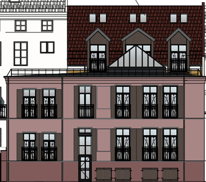 Projektiniuose pasiūlymuose nurodoma, kad bus atnaujintas ir nudažytas fasado tinkas, išsaugomi ir atkuriami fasado puošybos apdailos fragmentai, pirmame aukšte bus įrengti berėmiai vitrininiai langai ir durys, antrame ir trečiame aukštuose - mediniai langai.