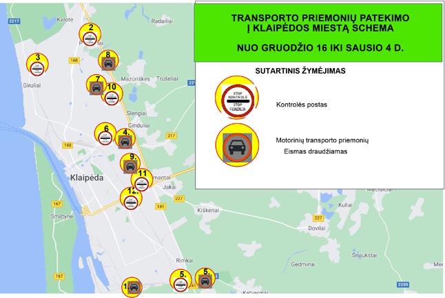 Nors Klaipėdos miestas ruošėsi nuolatinės kontrolės užtikrinimui, po Vyriausybės ir Vidaus reikalų ministerijos išaiškinimų ir pristatytų kontrolės planų, kontrolės postuose nuolatinis policijos budėjimas numatomas savaitgaliais ir švenčių dienomis. Vidaus reikalų ministerija praneša, kad judėjimo kontrolė vyks nuo gruodžio 18 d. 13 val. iki gruodžio 20 d. 21 val., nuo gruodžio 23 d. 13 val. iki 27 d. 21 val., taip pat nuo gruodžio 31 d. 13 val. iki sausio 3 d. 21 val. Nenurodytomis darbo dienomis Klaipėdoje policija vykdys kontrolę postuose mobiliu principu, kiekviename iš 7 postų skirtingu laiku bus vykdoma įvažiavimo į miestą patikra. Į pagalbą policija ketina pasitelkti viešojo saugumo tarnybos pareigūnus, pasieniečius, policijos rėmėjus, šaulius, karo policiją.