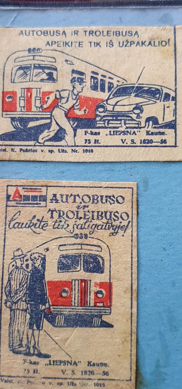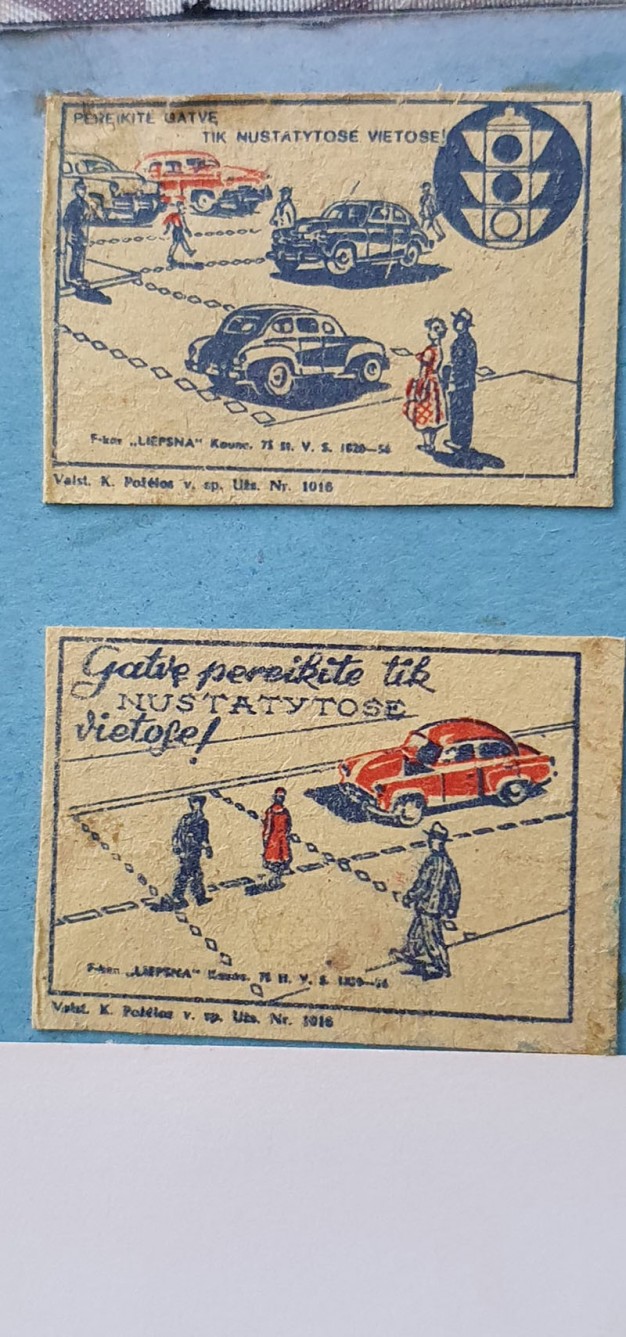 Serija degtukų dėžučių etikečių buvo skirta įvairioms kelių eismo taisyklėms, kurios atskleidžia tokias laikmečio realijas, kurios šiandien skamba labai juokingai. "Pavyzdžiui, vienoje etiketėje pavaizduota girtų vyrų kompanija, važiuojanti arklio tempiamu vežimu, kuri sukelia pavojų šalia važiuojančiam automobiliui, arba pavaizduotas prekinis traukinys su žmogumi ant vagono ir užrašas "Važiuoti virš traukinių draudžiama", juokingai atrodo ir paveikslėlis su karve prie geležinkelio ir įspėjimu saugoti savo gyvulius", - komentavo kolekciją V. Kapsevičienė.