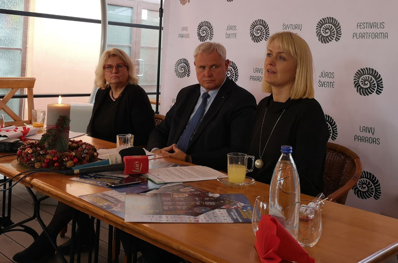 SPAUDOS KONFERENCIJOJE, surengtoje kavinėje "Senoji Hansa", artėjančių švenčių programą ir siurprizus pristatė iš kairės: Savivaldybės administracijos Miesto tvarkymo skyriaus vedėja Irena Šakalienė, meras Vytautas Grubliauskas, VšĮ "Klaipėdos šventės" kūrybos vadovė Dalia Grikšaitė.