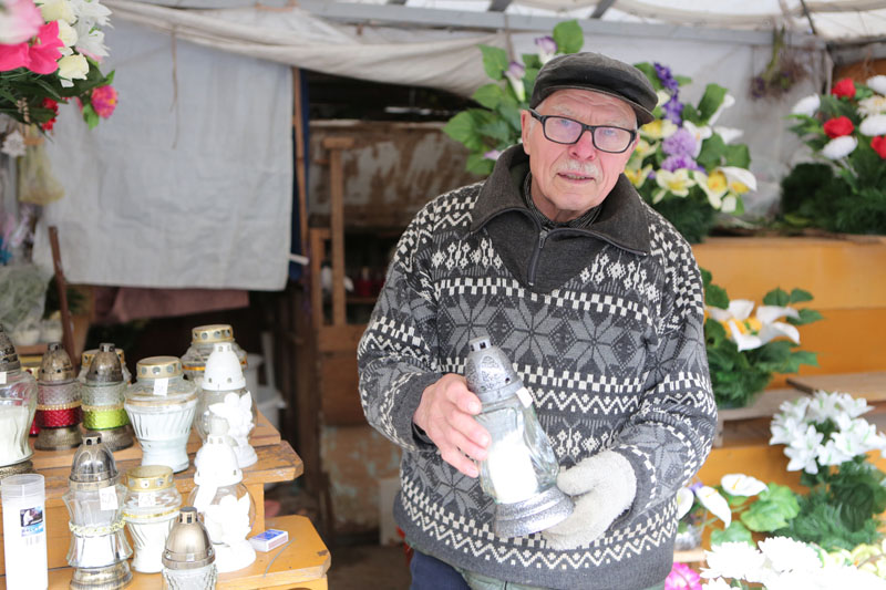 "Mirė žmona, liko gėlių, tad reikia jas parduoti. Bet kad žmonių nėra, vos ant duonos pavyksta užsidirbti. Būna ir tokių dienų, kai nieko neparduodu, bet ką darysi - rizika ne muzika. Visi nori, kad puokštė būtų didelė, bet pigi", - prekybą įvertino 3-5 eurus už puokštelę prašantis senolis.