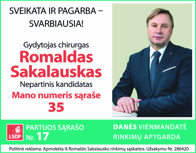 Politinė reklama apmokėta iš Romaldo Sakalausko rinkimų sąskaitos.
