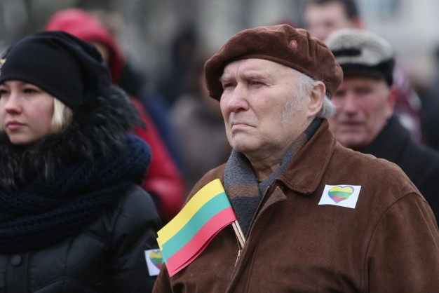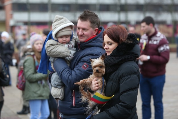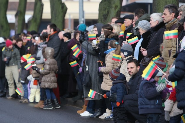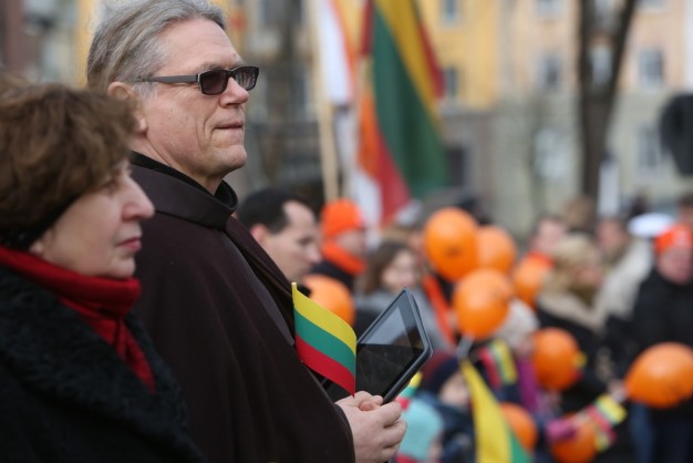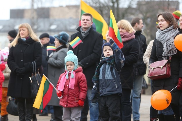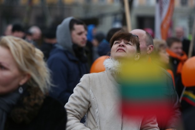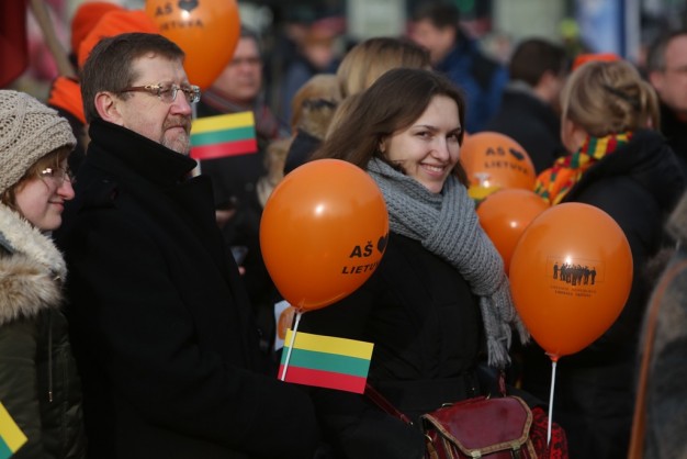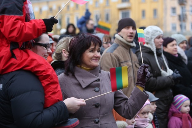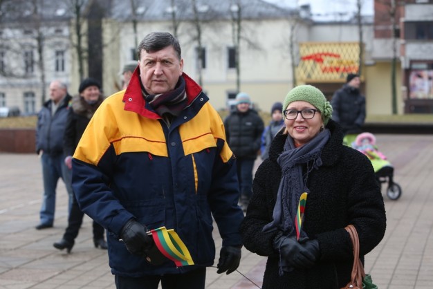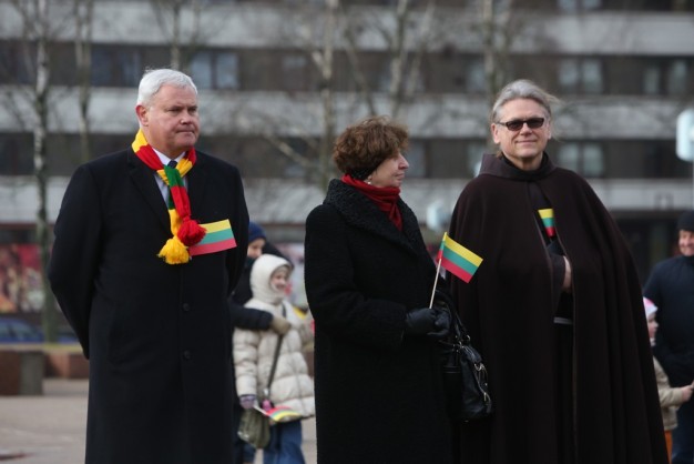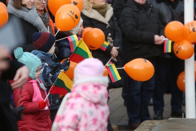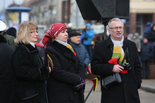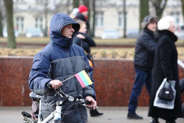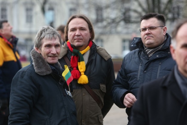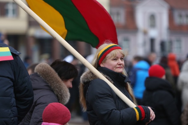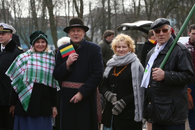 Didžiulę trispalvę su stiebu ant peties nešusi Jolanta sakė, kad iš meilės Lietuvai nesunku ir vėliavą nešioti. "Jau kelintus metus nešu didelę vėliavą, visada nešuosi mažą. Vasario 16-oji atveria naujas galimybes, mes visi puikiai suprantame, kad diktatūra yra negeras dalykas", - sakė moteris.