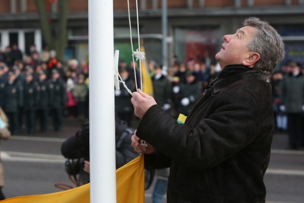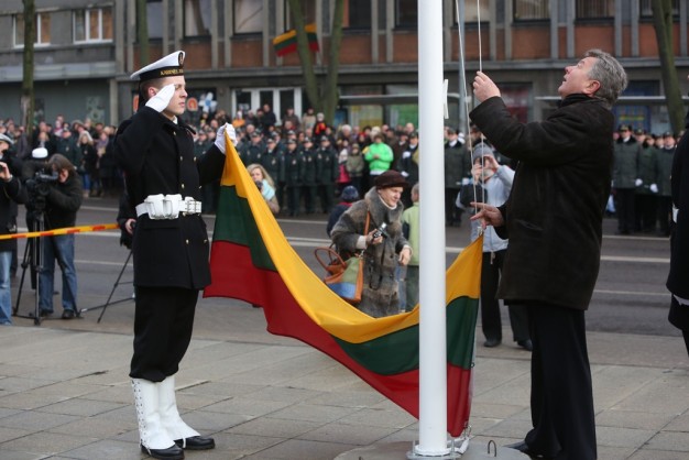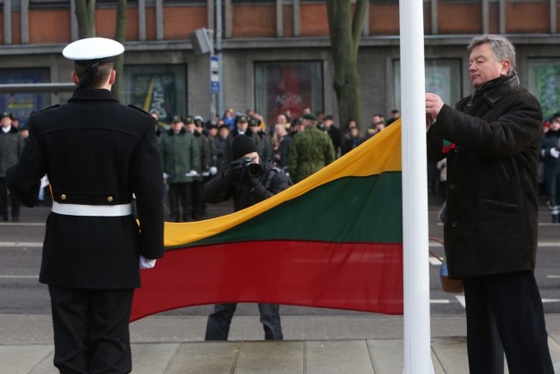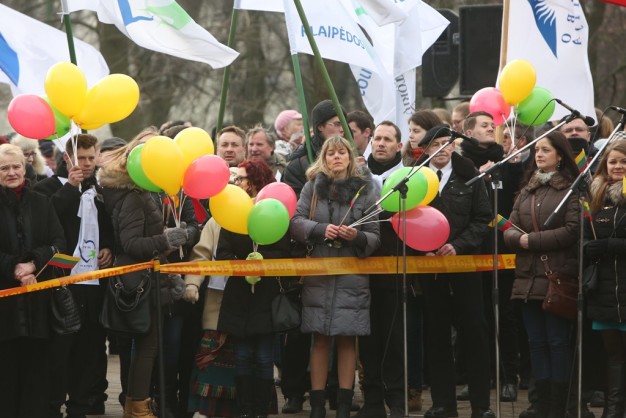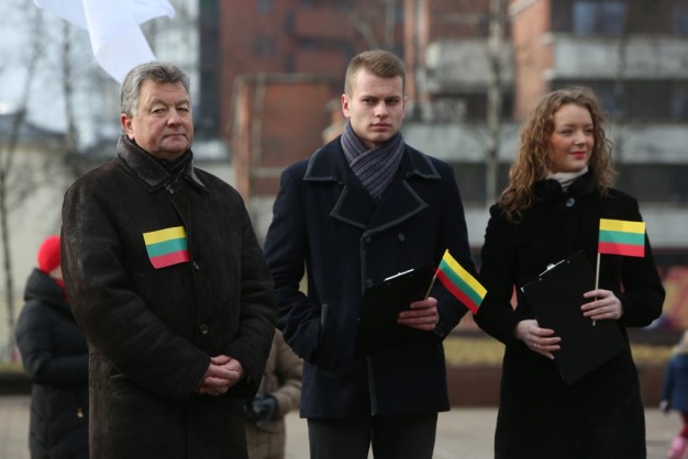 "Kokį jubiliejų Lietuva bešvęstų, ji visada išliks jauna, ambicinga valstybė. Jauna savo siekiais, ambicijomis, drąsa priimti iššūkiams, drąsa, kurios tikrai reikės. Jos tikiuosi iš jūsų, kurie šiandien esate atsakingi už ateities kūrimą. Todėl linkiu visiems - susitelkime, tegu mus vienija ne tik bendri siekiai, švęskime oriai, džiaugsmingai, išradingai", - klaipėdiečius sveikino Klaipėdos meras Vytautas Grubliauskas.