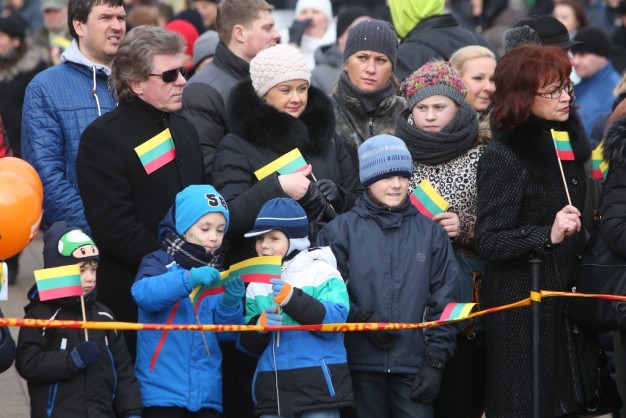 Trispalvę ant skruosto nusipiešusi ir balionais nešina Eglė sakė, kad Vasario 16-oji yra svarbi Lietuvai. "Kiekvieno lietuvio patrioto pareiga yra paminėti šią dieną, nes ji išliks amžiams. Aš galiu vadinti save patriote", - sakė mergina.