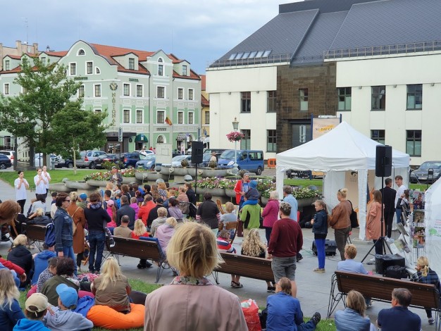 Renginio pranešėja pasidžiaugė geru oru ir kvietė kartu smagiai praleisti laiką bei jausti bendrystę giedant Tautišką giesmę.