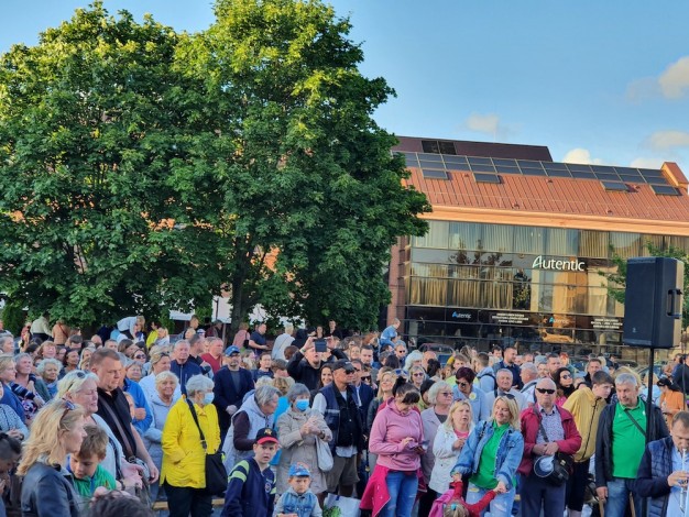 Lygiai 21 valandą choras „Cantare“ davė toną Tautiškai giesmei, jiems vieningai pritarė gausiai susirinkusi minia, kurios dalis giedojo net sustojusi kitoje krantinės pusėje.